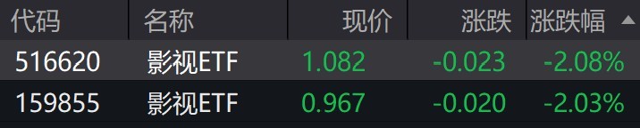 受盤面影響,跟蹤中證影視主題指數(shù)的影視ETF跌超2%。