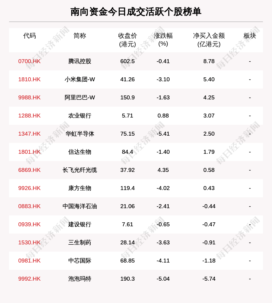 南向資金成交活躍個(gè)股榜單中,凈買入個(gè)股共8只,金額最多的是騰訊控股(0700.HK,收盤價(jià):602.5港元),凈買入8.776億港元;凈賣出個(gè)股共5只,金額最多的是泡泡瑪特(9992.HK,收盤價(jià):190.3港元),凈賣出5.744億港元。