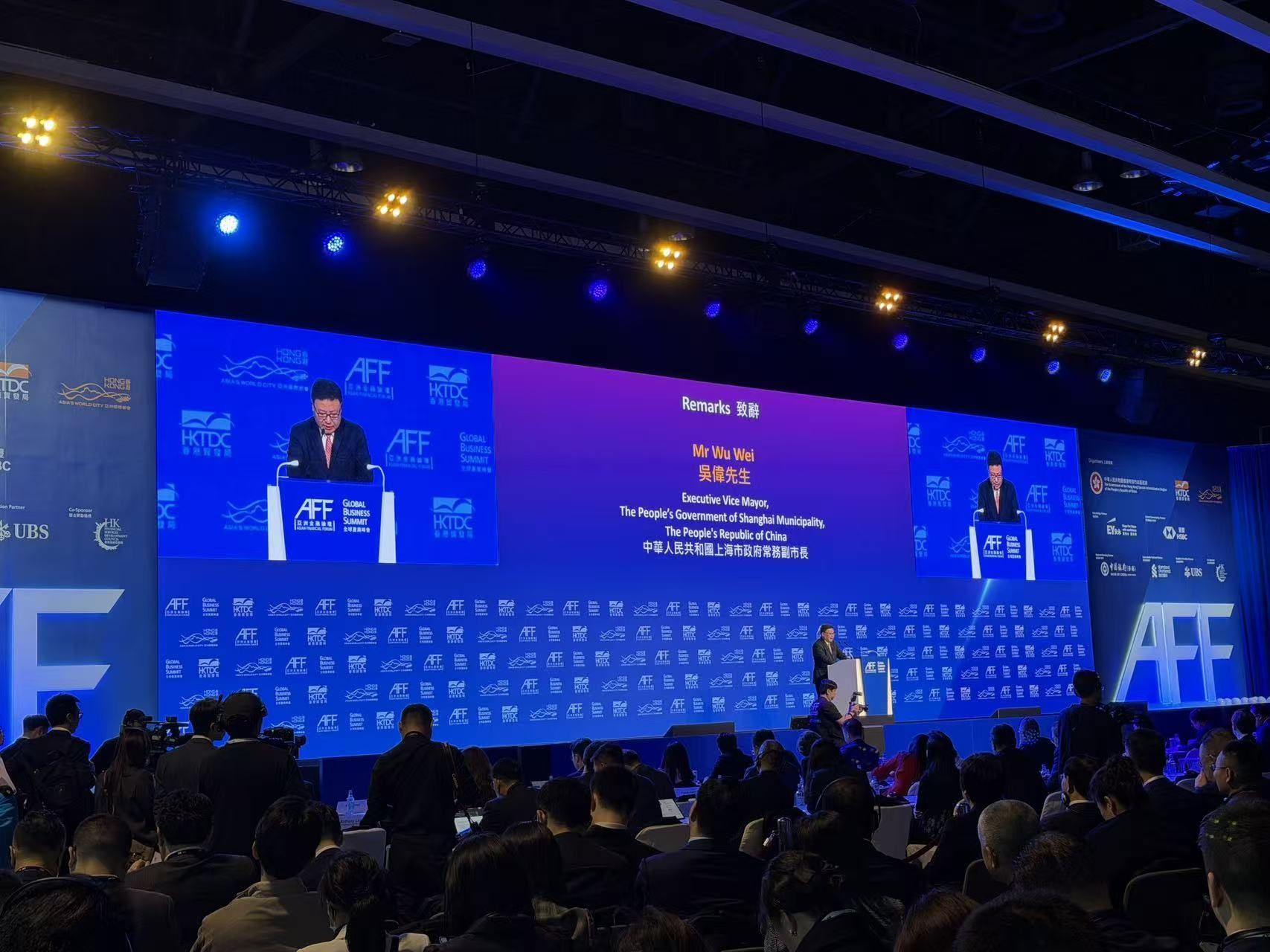 1月27日,上海市委常委、常務(wù)副市長吳偉在第19屆亞洲金融論壇上致辭。 圖片來源:每經(jīng)記者 李旭馗攝
