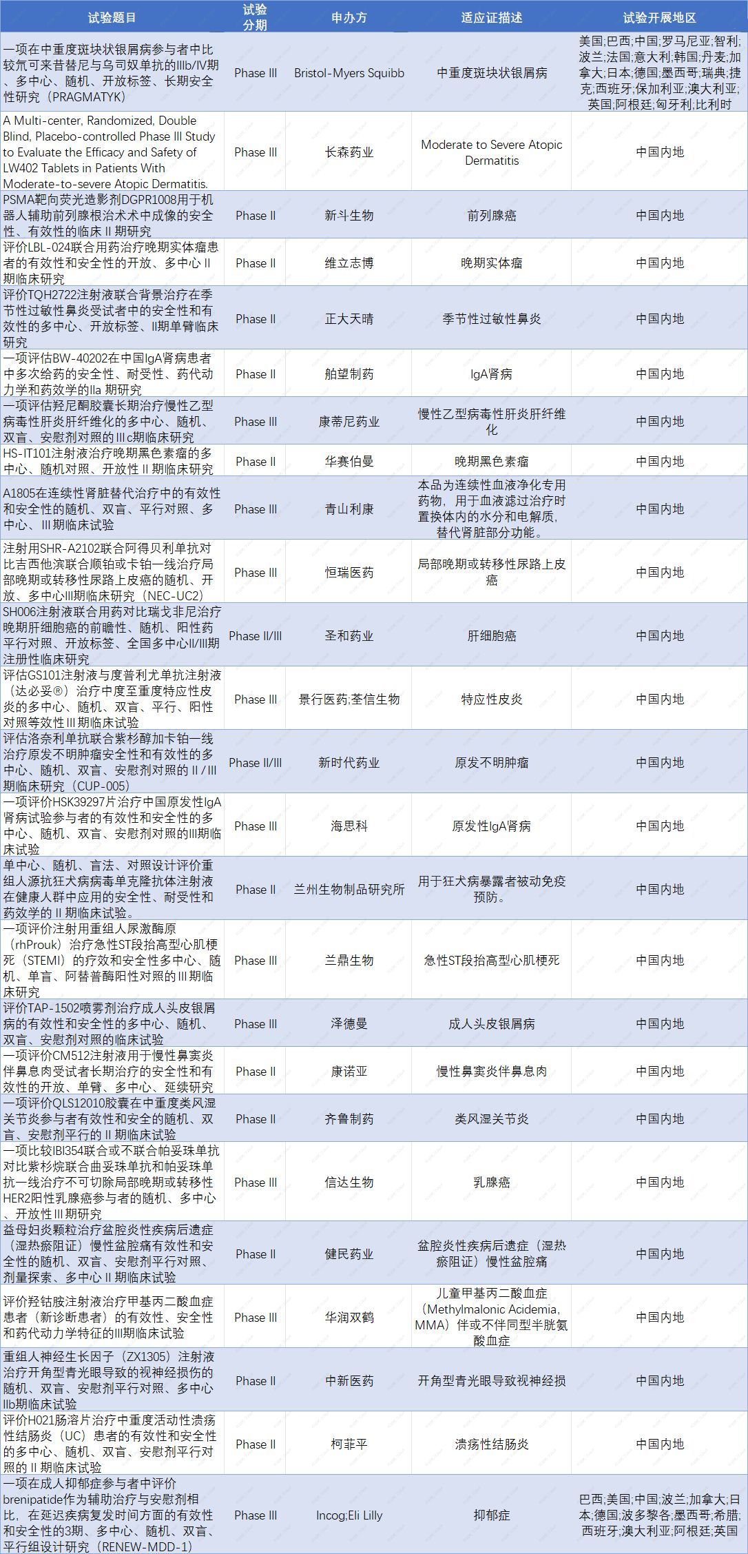 一周臨床試驗動向