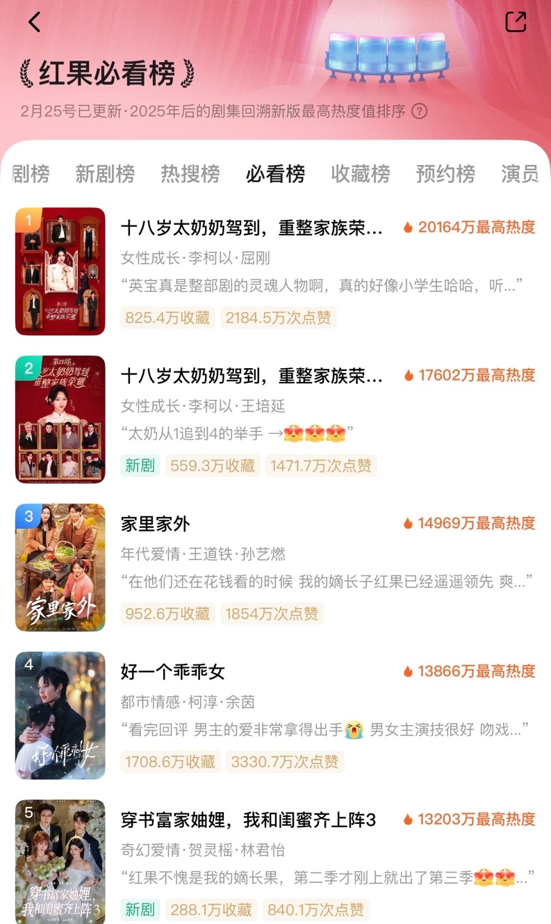 精品短劇最高熱度破億,也吸引更多投資人入場 圖片來源:紅果短劇
