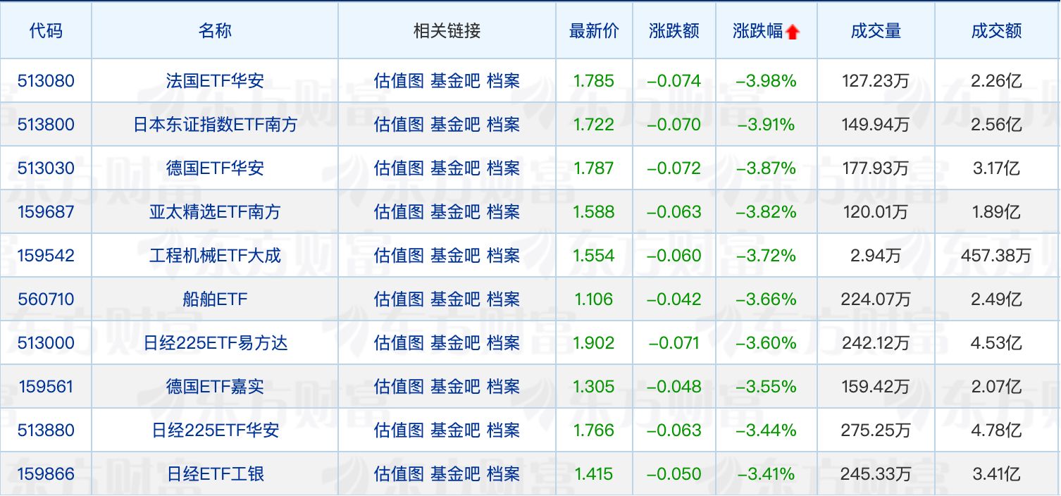 下跌方面,法國(guó)ETF華安領(lǐng)跌。