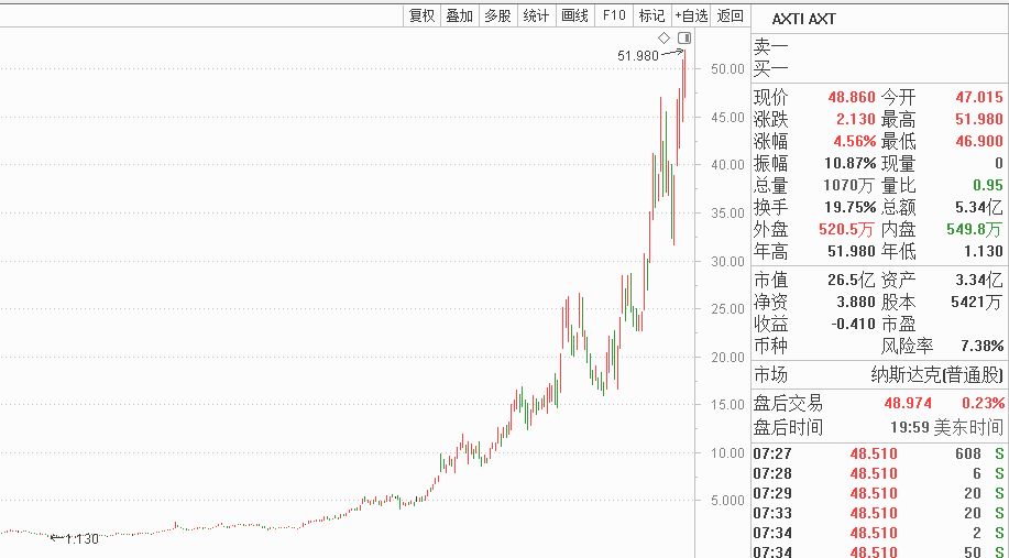 此外,3月16日還有一個(gè)重要消息是英偉達(dá)GTC大會(huì)。從美股來(lái)看,AXT股價(jià)近一年上漲45倍,其涉及磷化銦產(chǎn)品。磷化銦下游最大需求是光模塊。