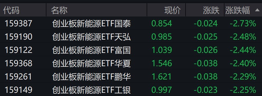 受盤面影響,創(chuàng)業(yè)板新能源相關(guān)ETF跌超2%。