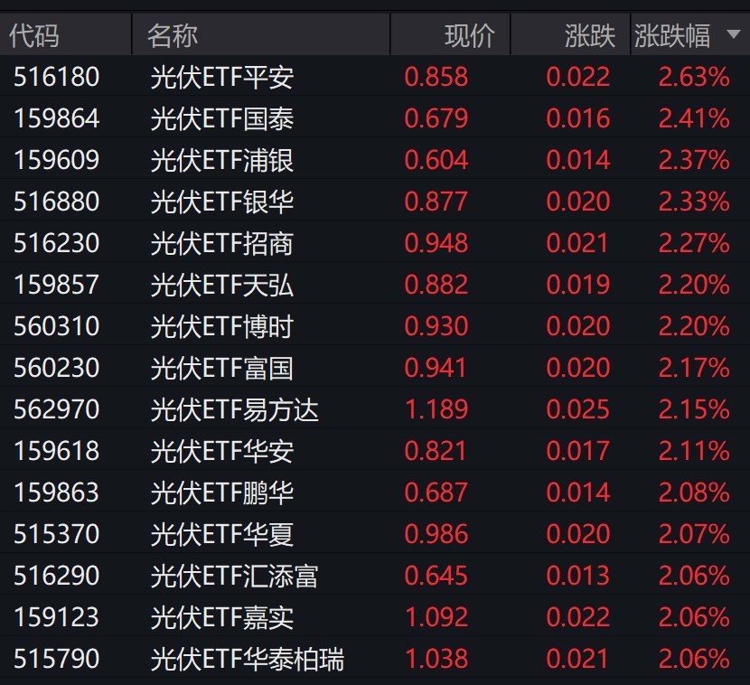 光伏概念股走強(qiáng),相關(guān)ETF漲超2%
