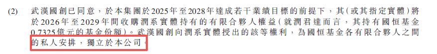 此外,國恒基金最大的有限合伙人武漢國創(chuàng)創(chuàng)新投資有限公司已同意,在華工科技于2025年至2028年達(dá)成若干業(yè)績目標(biāo)的前提下,武漢國創(chuàng)或其指定實體將于2026年至2029年間收購潤系實體持有的有限合伙人權(quán)益。