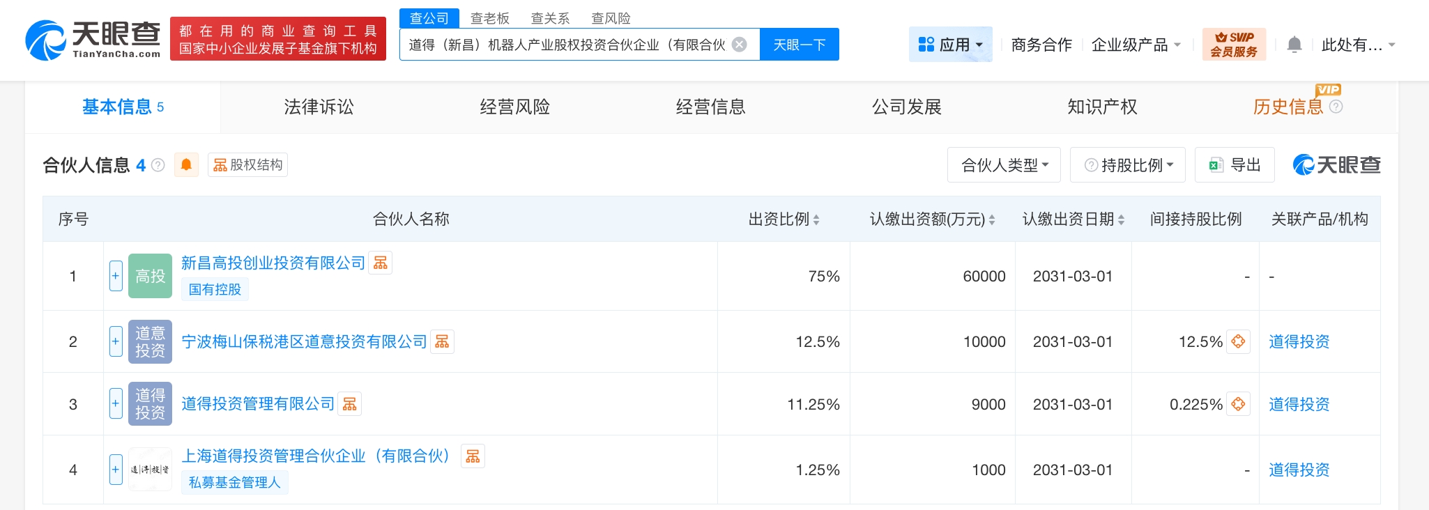 每經(jīng)AI快訊,天眼查工商信息顯示,近日,道得(新昌)機(jī)器人產(chǎn)業(yè)股權(quán)投資合伙企業(yè)(有限合伙)成立,執(zhí)行事務(wù)合伙人為上海道得投資管理合伙企業(yè)(有限合伙),出資額8億元人民幣,經(jīng)營范圍為以私募基金從事股權(quán)投資、投資管理、資產(chǎn)管理等活動(dòng),創(chuàng)業(yè)投資,以自有資金從事投資活動(dòng)。合伙人信息顯示,該合伙企業(yè)由新昌高投創(chuàng)業(yè)投資有限公司、寧波梅山保稅港區(qū)道意投資有限公司、道得投資管理有限公司、上海道得投資管理合伙企業(yè)(有限合伙)共同出資。