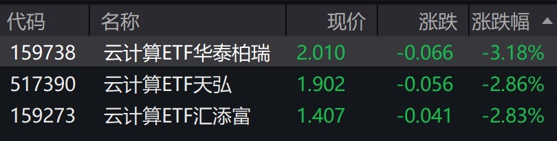 受盤面影響,云計算相關(guān)ETF跌約3%。