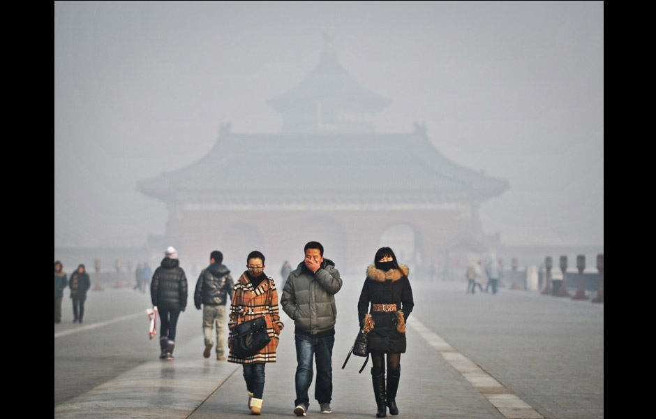1月12日,北京持續(xù)霧霾天氣。當(dāng)日,北京PM2.5指數(shù)瀕臨“爆表”,空氣質(zhì)量持續(xù)六級(jí)嚴(yán)重污染。北京環(huán)境監(jiān)測(cè)中心專家表示,從污染形勢(shì)預(yù)報(bào)的分析結(jié)果看,此次影響北京市的重污染過程在下周一之前不會(huì)發(fā)生明顯改善。原標(biāo)題:中國遭遇最嚴(yán)重霧霾...